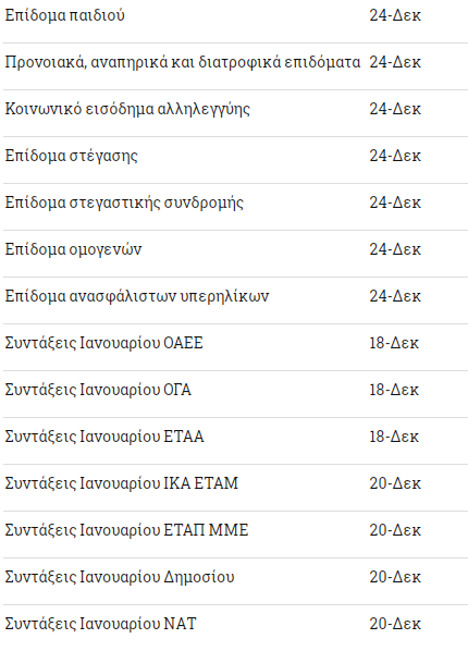 Ο ΟΠΕΚΑ έχει ανακοινώσει ότι την Τρίτη 24 Δεκεμβρίου θα καταβληθούν τα παρακάτω επιδόματα και παροχές: