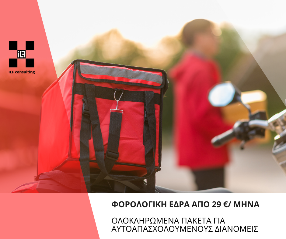 Φορολογική ΕΔΡΑ από 29 ευρώ Προσφορά Υποστηρικτικών Υπηρεσιών για delivery – Εργαζομένους Οδηγούς Δίκυκλου More: