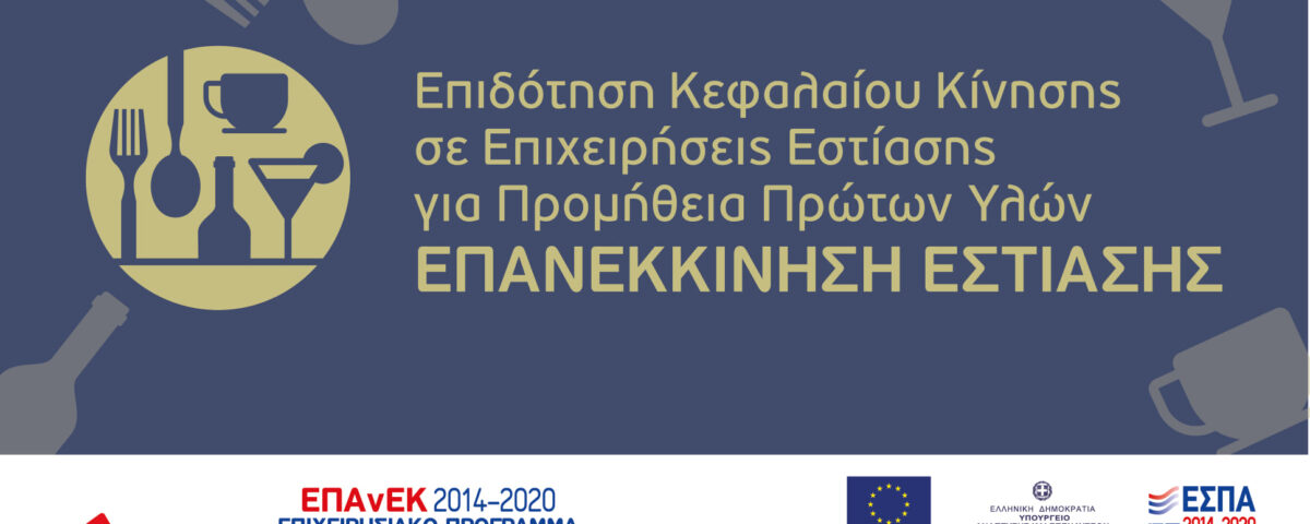 Η Δράση στοχεύει στην επιχορήγηση ΜμΕ και Μεγάλων Επιχειρήσεων του κλάδου της εστίασης για την προμήθεια πρώτων υλών απαραίτητων για τη στήριξη μετά την επανεκκίνηση της λειτουργίας τους, υπό το καθεστώς της πανδημίας της νόσου COVID-19.