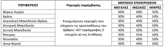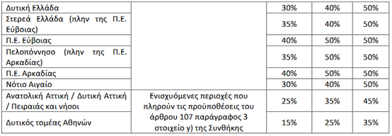 Καθορισμός έντασης περιφερειακών ενισχύσεων, ανά περιφέρεια