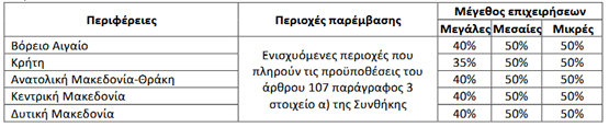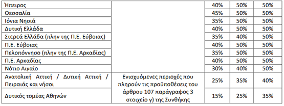 Καθορισμός έντασης περιφερειακών ενισχύσεων, ανά περιφέρεια