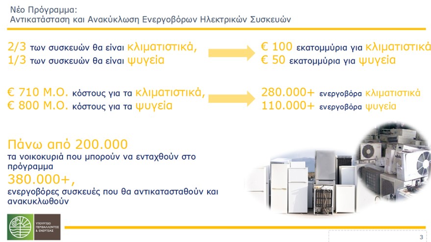 Το Πρόγραμμα απαιτεί την αντικατάσταση/απόσυρση μίας παλιάς συσκευής για κάθε νέα που επιδοτείται η αγορά της.