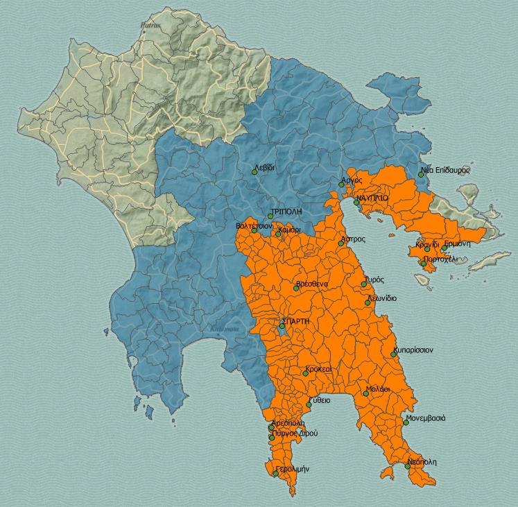 | Πελοπόννησος: Δήμοι Μεγαλόπολης, Γορτυνίας Τρίπολης Οιχαλίας | 60% | 70% | 50% |