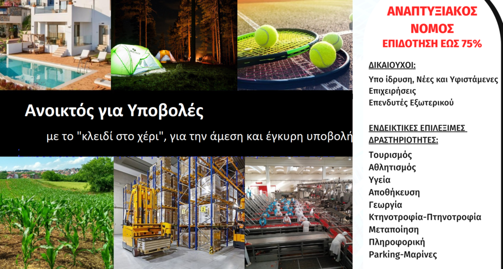 Δικαιούχοι: Υπό ίδρυση / Νέες και Υφιστάμενες Επιχειρήσεις, Επενδυτές του εξωτερικού.