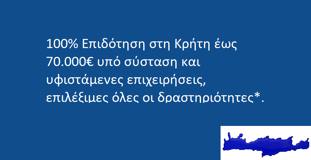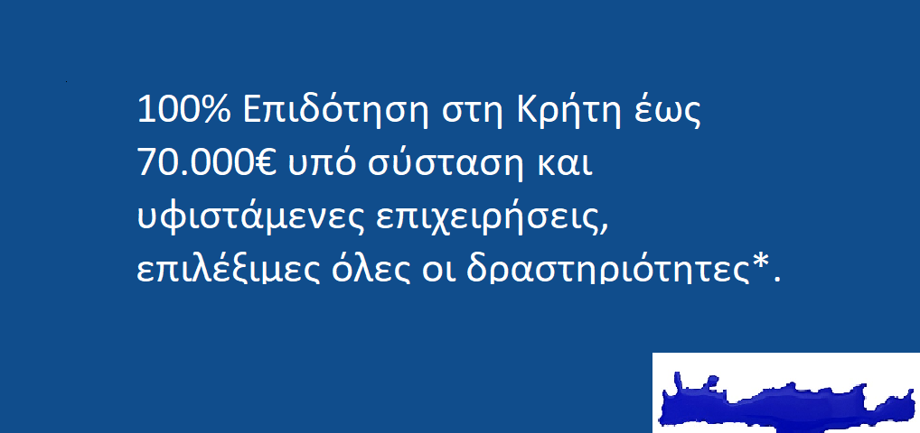 Για ΕΓΚΥΡΗ ενημέρωση για την έναρξη του προγράμματος με σκοπό την ΑΜΕΣΗ υποβολή, ελάτε σε επικοινωνία με το αρμόδιο τμήμα μας 2106926590 ή στείλτε e-mail στο [email protected] με θέμα: 100% Επιδότηση Κρήτη μαζί με ένα τηλέφωνο επικοινωνίας ( κατά προτίμηση κινητό )