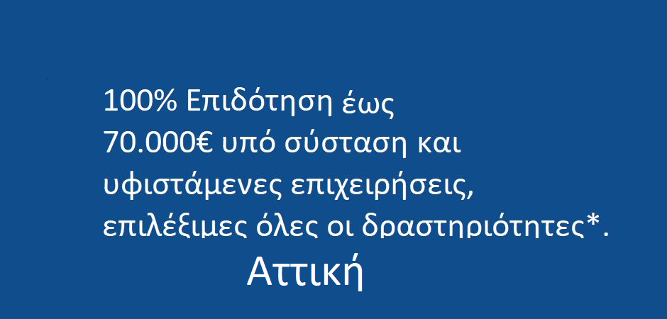 Αττική: 100% Επιδότηση έως 70.000€ υπό σύσταση και υφιστάμενες επιχειρήσεις, επιλέξιμες όλες οι δραστηριότητες. Αναμένεται