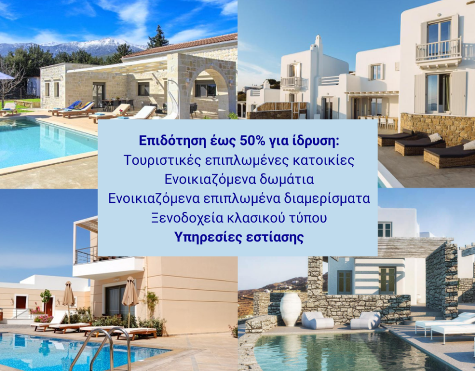Ίδρυση – Υπηρεσίες Εστίασης – καταλυμάτων, τουριστικές επιπλωμένες κατοικίες, ενοικιαζόμενα δωμάτια, ξενοδοχεία. Πράσινος αγρο-τουρισμός της Δράσης Οικονομικός Μετασχηματισμός του Αγροτικού Τομέα