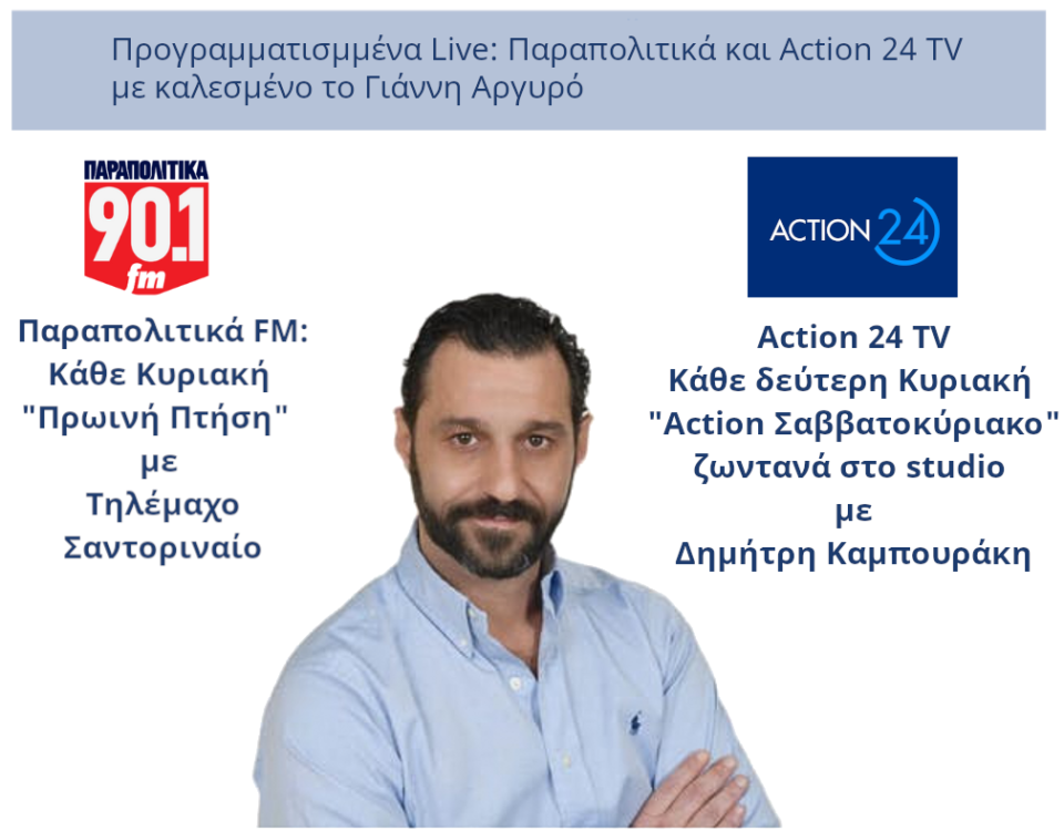 Κυριακή 22/09/2024 σχετικό απόσπασμα: Ακούστε τον Γιάννη Αργυρό LIVE στην Πρωινή πτήση ραδιοφωνική εκπομπή με τον Τηλέμαχο Σαντοριναίο.