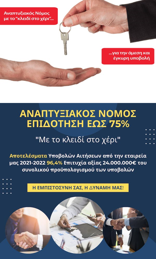 Επιδότηση στην Θεσσαλία έως 70%. Νέος Αναπτυξιακός Νόμος – Ελλάδα Ισχυρή Ανάπτυξη. Ανοικτός για υποβολές